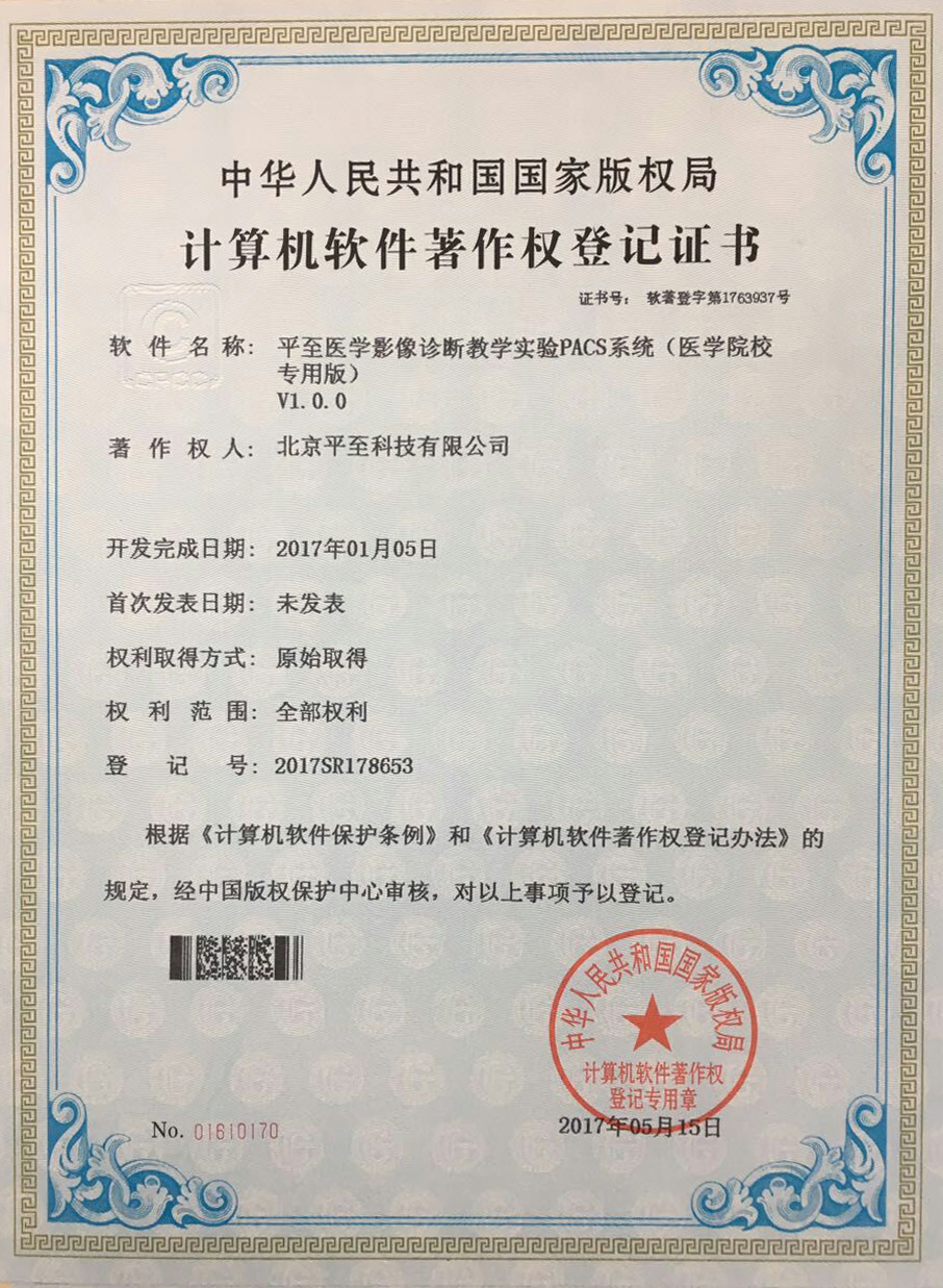 北京平至科技专为医学院校医学影像诊断课程教学实验而量身定做的《平至医学影像诊断教学实验PACS系统(医学院校专用版)》,既具有PACS系统的基本内容,又突出了医学影像诊断课程教学与实验的需求,可组建局域网,又可融合于校园网之中,接口无限量,丰富、优化了教学资源,属PACS系统应用于高校教学实验的首创之作。主要有四大模块组成,一是PACS,二是考试系统,三是教学资料管理,四是师生互动平台。
