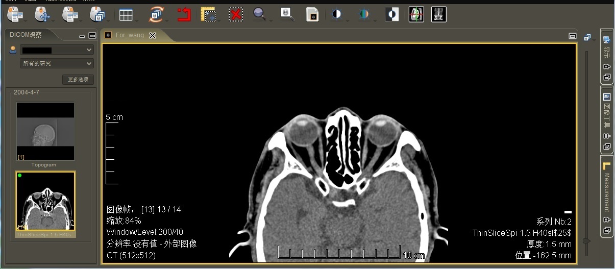 4.影像处理 支持DICOM3.0标准,可进行调节窗宽窗位、缩放、测距、旋转、明度调整,图像漫游等DICOM图像处理功能。